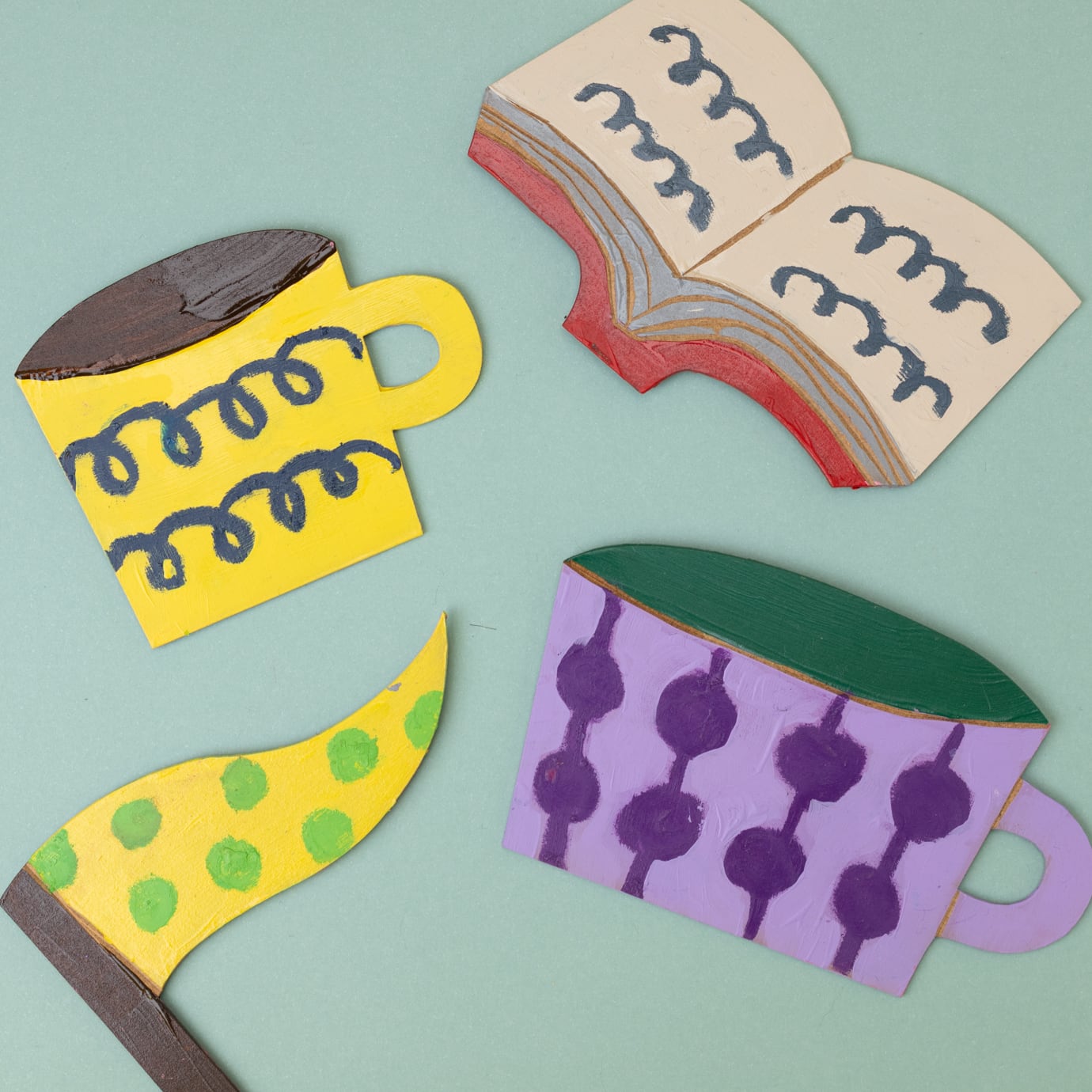 木製パネル、絵の具など