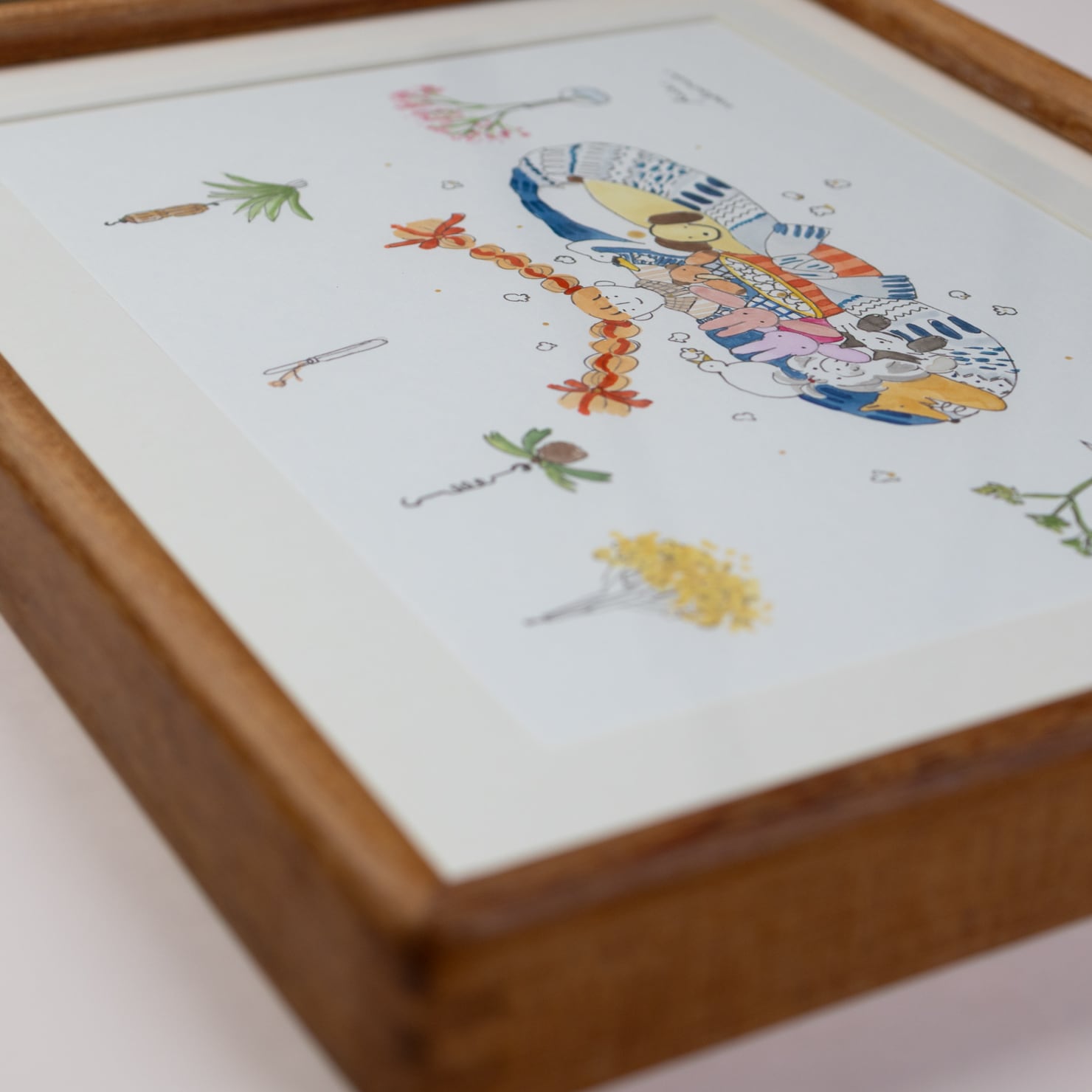 一点ずつ額装された状態でお届けするので、お気に入りの場所に、手軽に飾っていただくことができます。自身で選ばれたこだわりの額に入った作品は、まるでそこだけ小さな「窓」ができたかのよう...!飾ることで、お部屋の空気感がふんわりと柔らかく変わるのを感じていただけます。