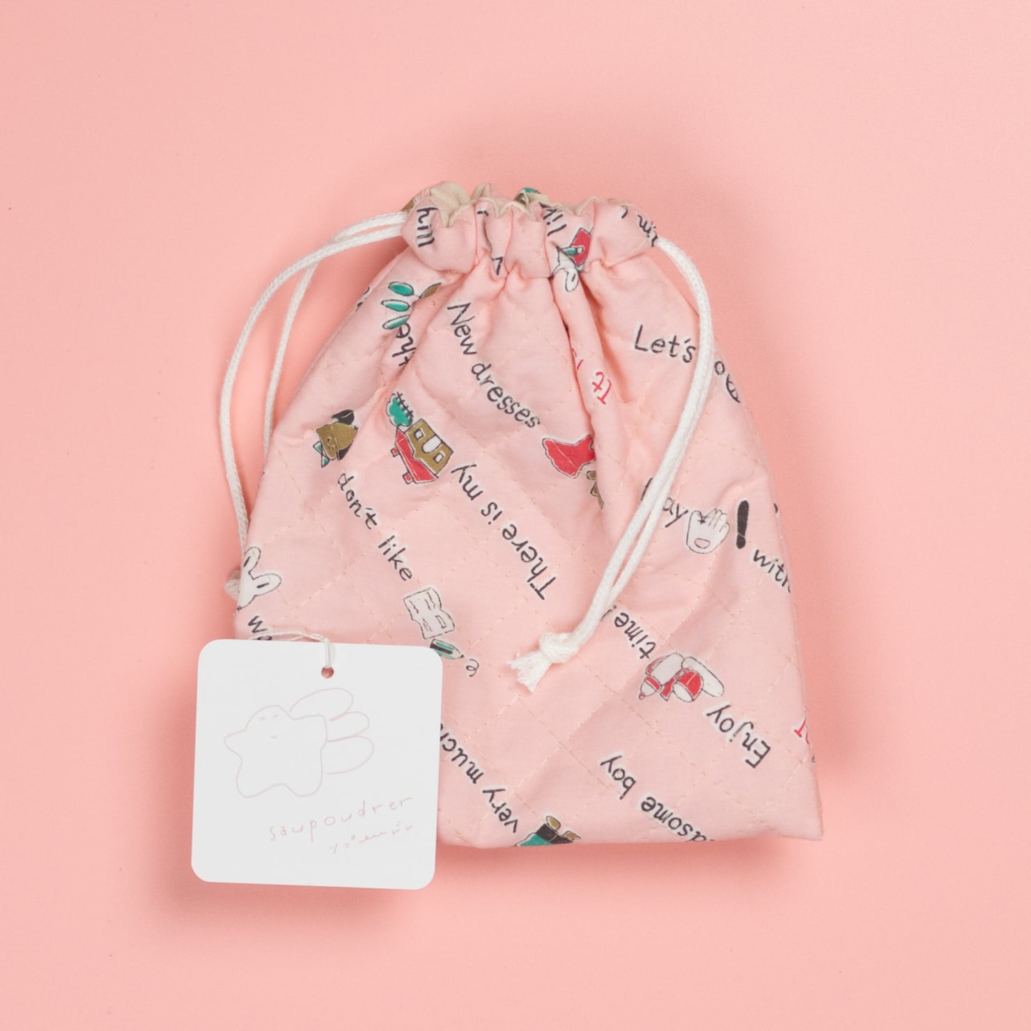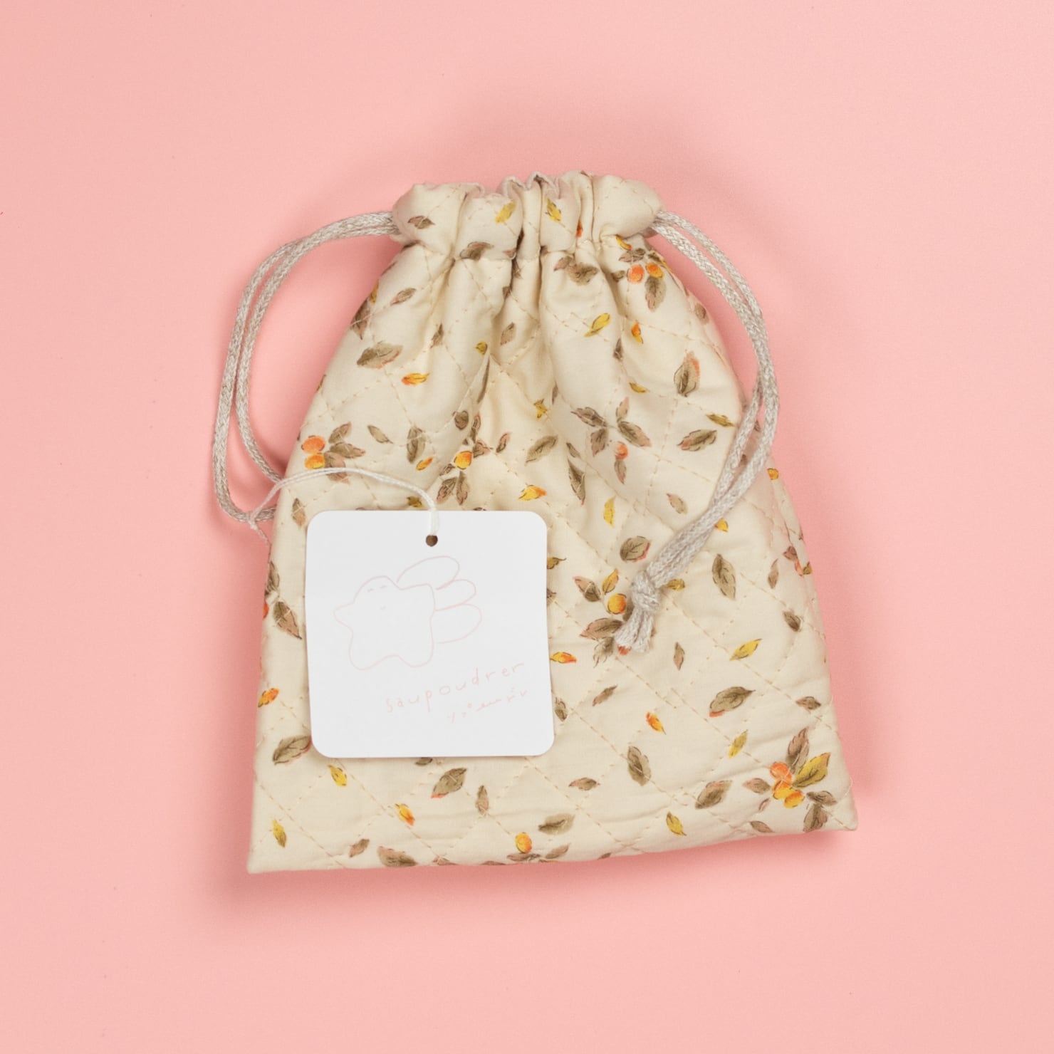 saupoudrerさんの魅力がぎゅっとつまった、一点もののオリジナル巾着。優しくノスタルジックなデザインは、鞄の中から取り出すたびに、とっておきの癒しを届けてくれます。