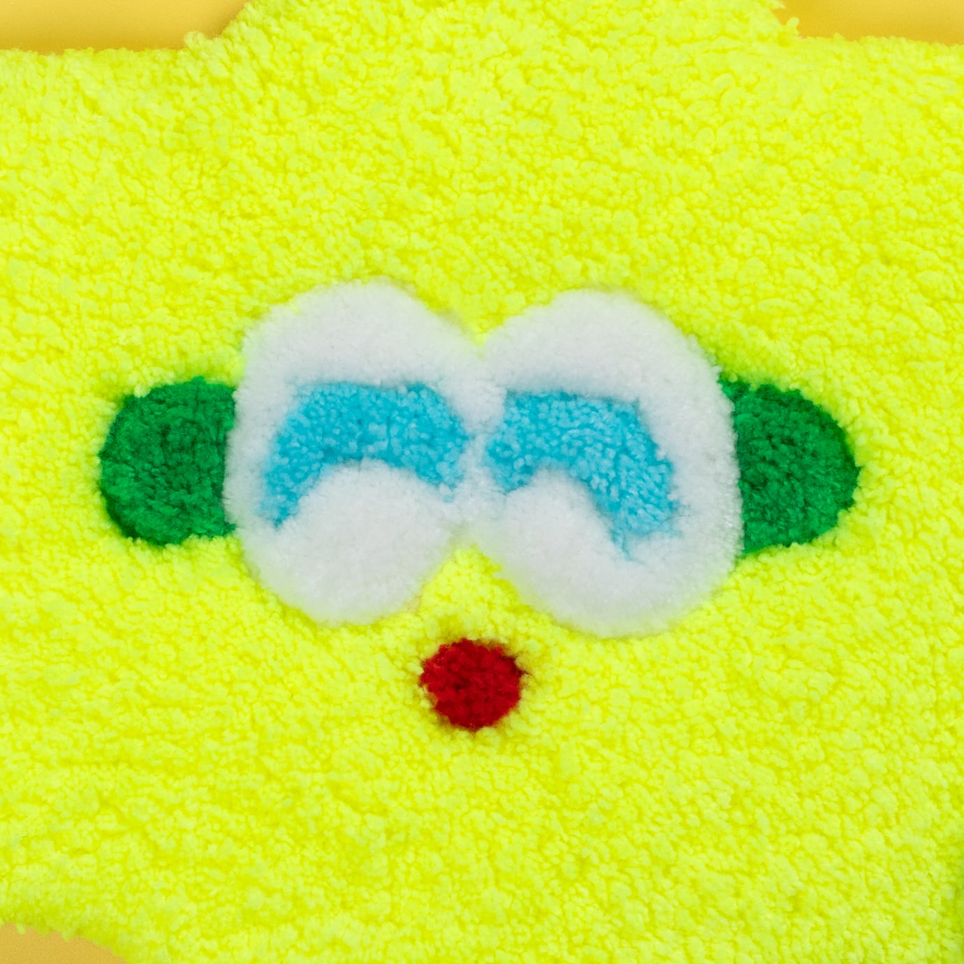 ・毛糸がひょっこりと飛び出してきたら、無理に引っ張らずに、表面の高さに合わせてハサミでそっとカットしてあげてください。